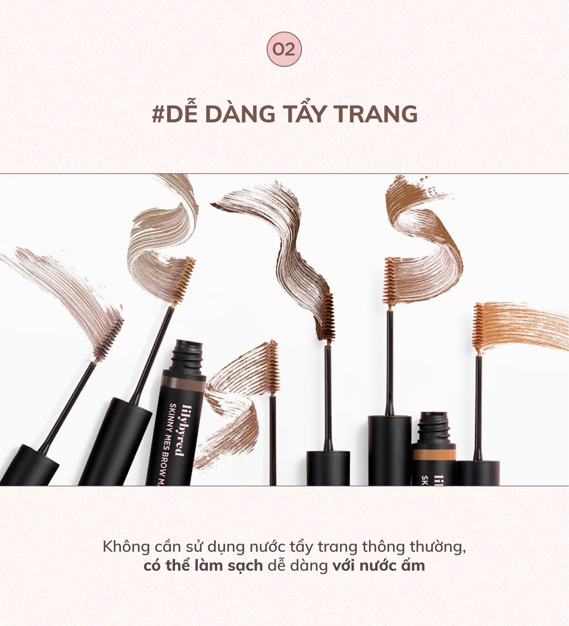 Mascara Lông Mày Lâu Trôi LILYBYRED Skinny Mes Brow Mascara - 02 Nâu Tự Nhiên 3.5g