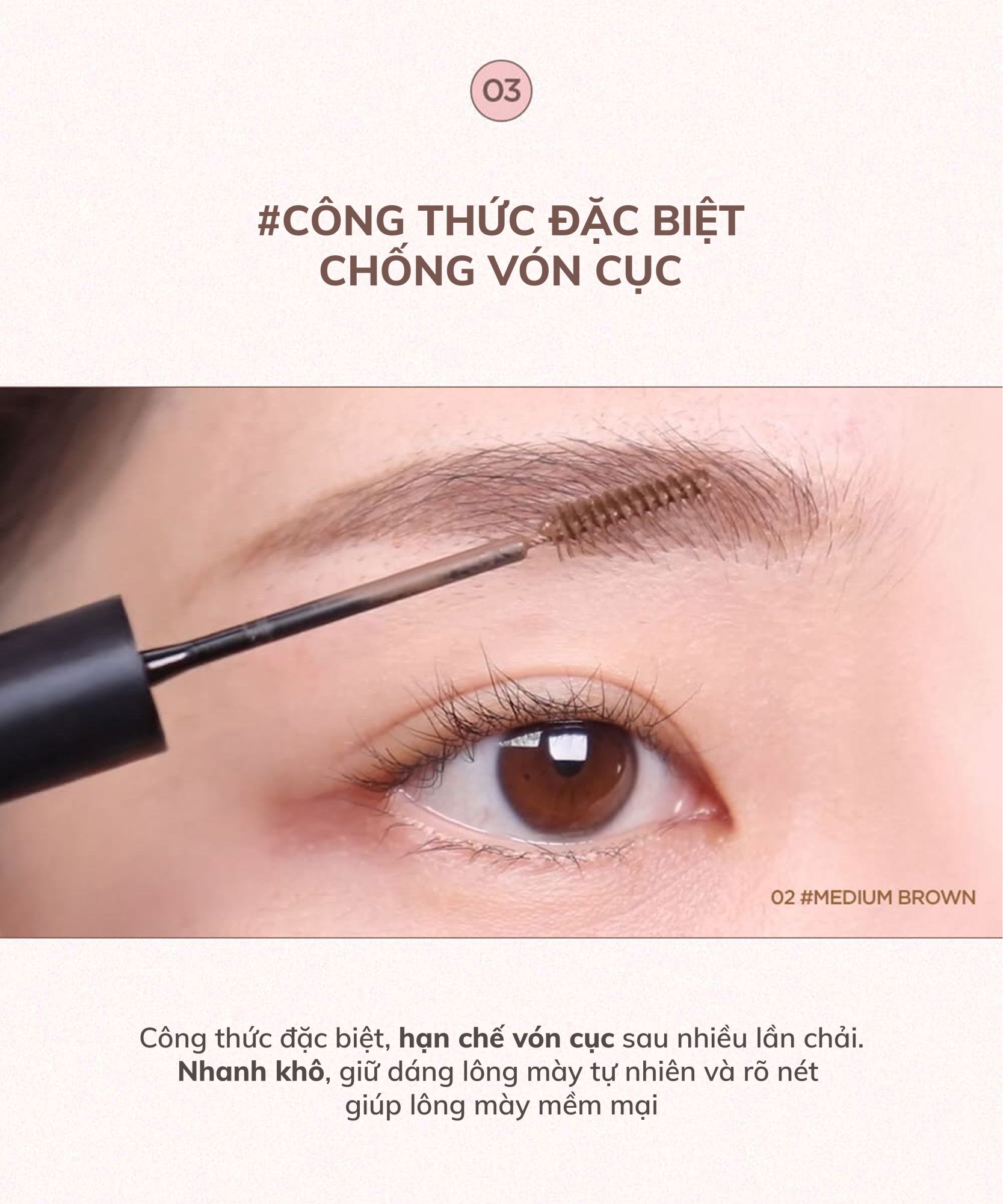 Bột bã nhờn của mascara giúp giữ lông mày bóng loáng và giúp duy trì màu sắc, hình dáng trong thời gian dài